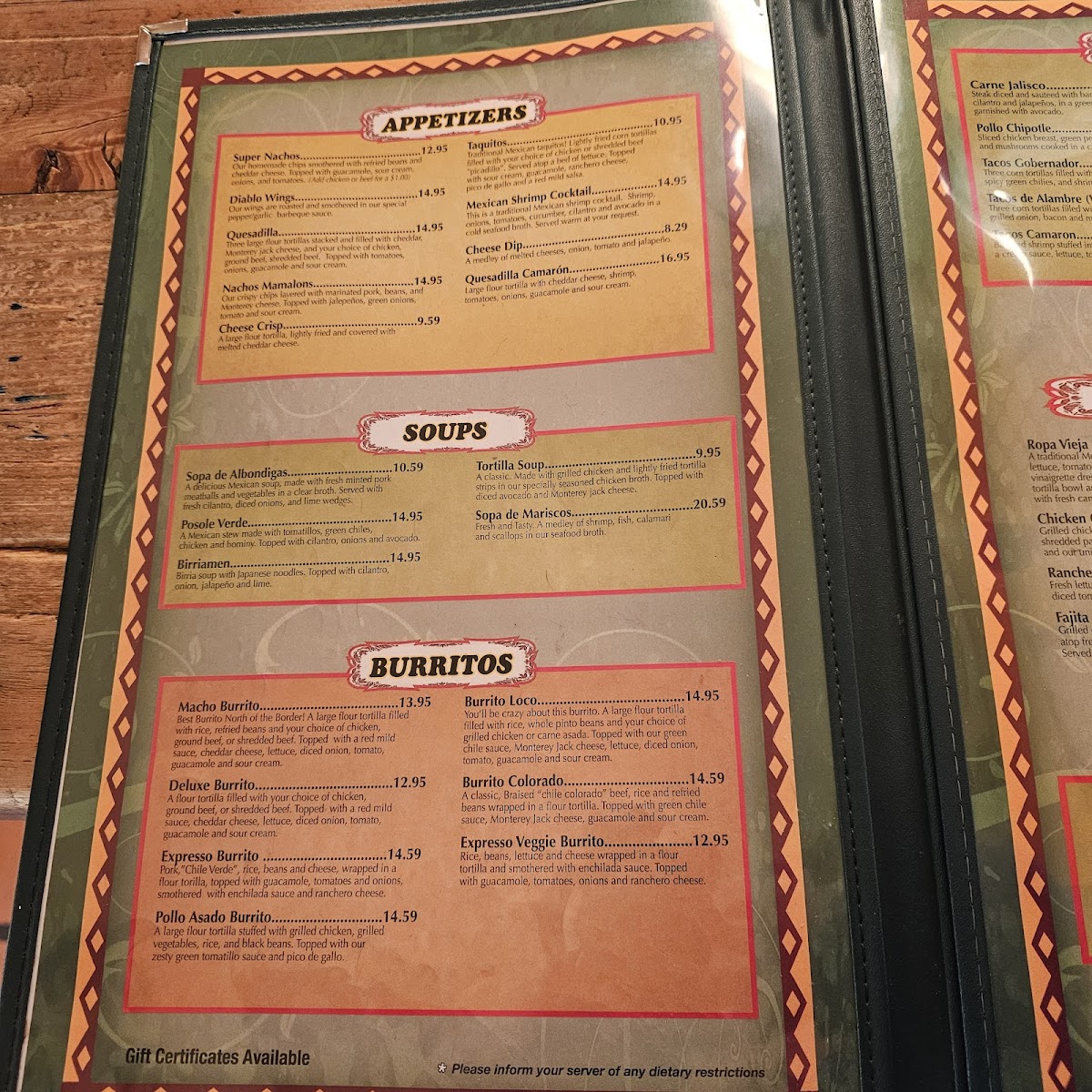 Plaza Bonita Prescott Valley Menu